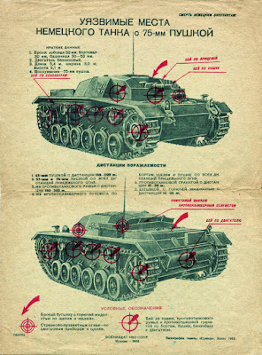 Poster with vulnerable parts of the StuG, which slightly differed in reality.
