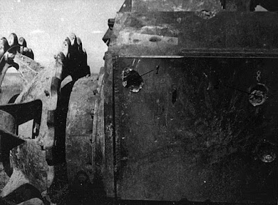 A similar result was attained by the 37 mm A-7 gun on the Czechoslovak Pz38(t) tank. It could confidently penetrate the sides, but the front was invulnerable: the shells left 40 mm deep dents. The results were different for subcaliber shells: they could penetrate at 100, 200, and 400 meters.