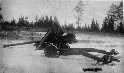 "It is impossible to transport the gun over 500 meters off-road with only the crew's strength. The 7 man crew can push the gun over only 100 meters on even terrain. Transport by hand is also difficult due to a lack of comfortable handles.