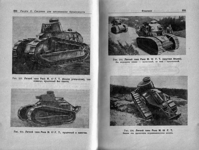 Russian translation of Taschenbuch der Tanks. The "M 17" with a riveted turret is on the left, the "M 18" with a cast turret is on the right. In reality, both tanks were simply designated "Renault FT".